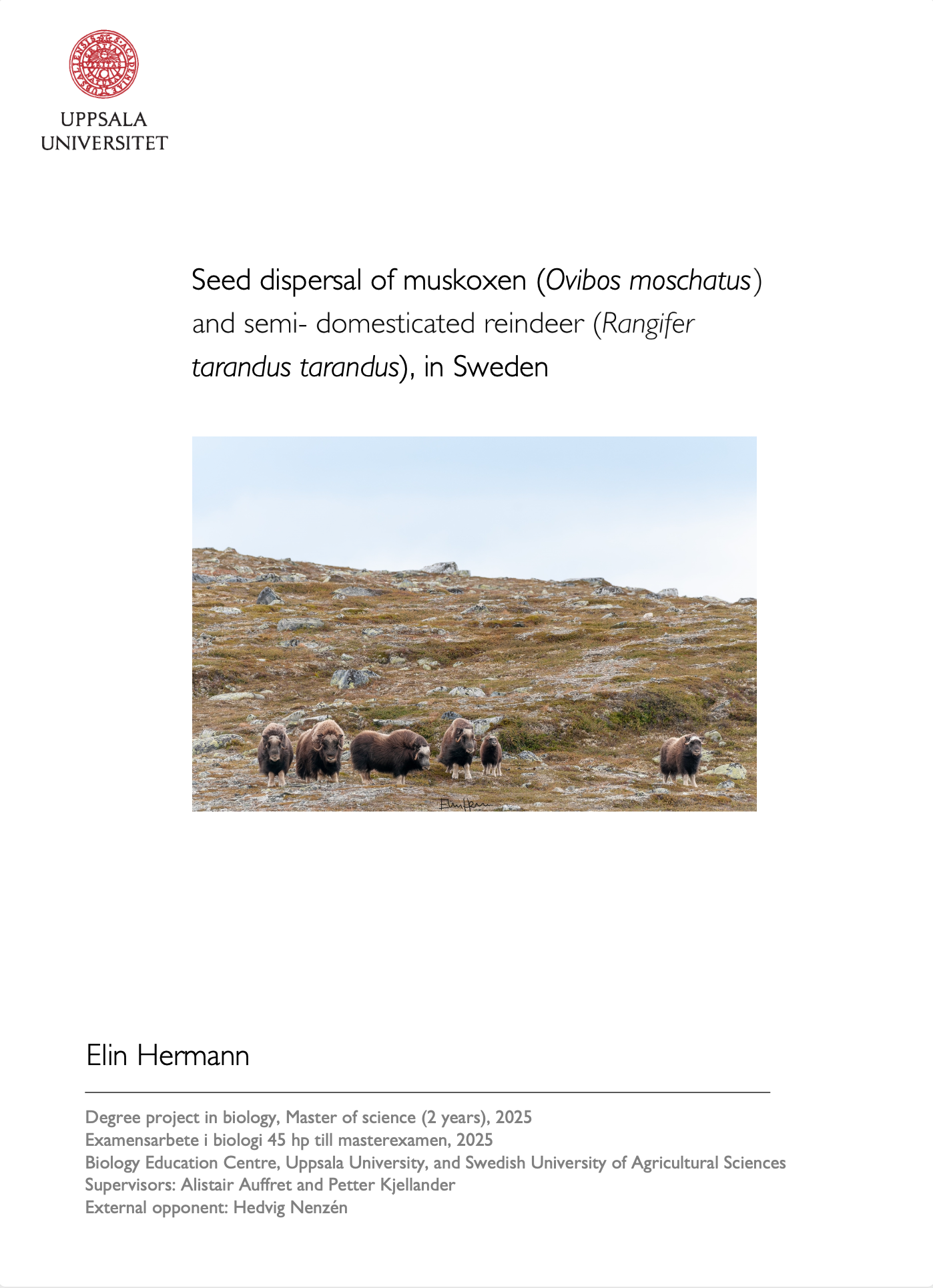Seed dispersal of muskoxen (Ovibus moschatus) and semi-domesticated reindeer (Rangifer tarandus tarnadus), in Sweden